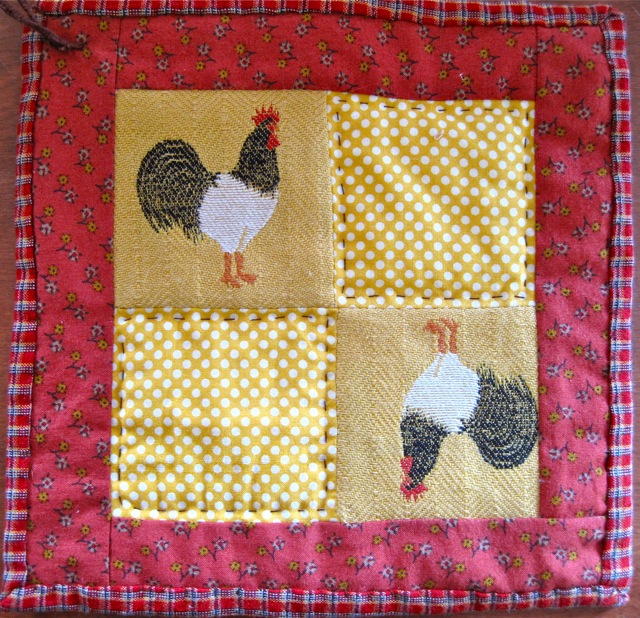 We've had flocks of chickens in the past, and maybe someday we will again, but in the meantime, when I got home, I have contented myself with making a new potholder.