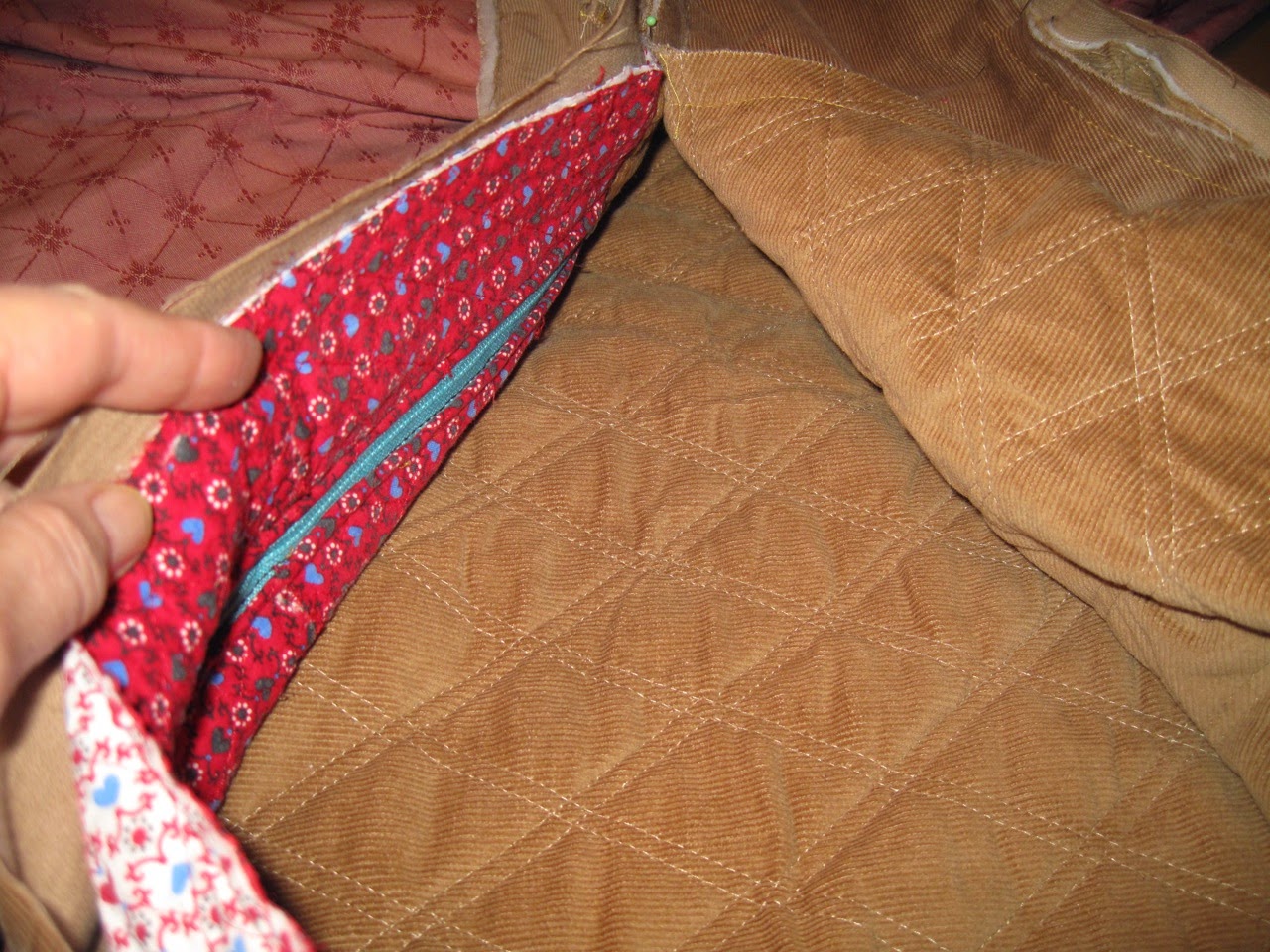 Inside the case is another little flash of cheerful color. It might have been nice to have enough of the quilted brown, but then again, this case is one of kind.